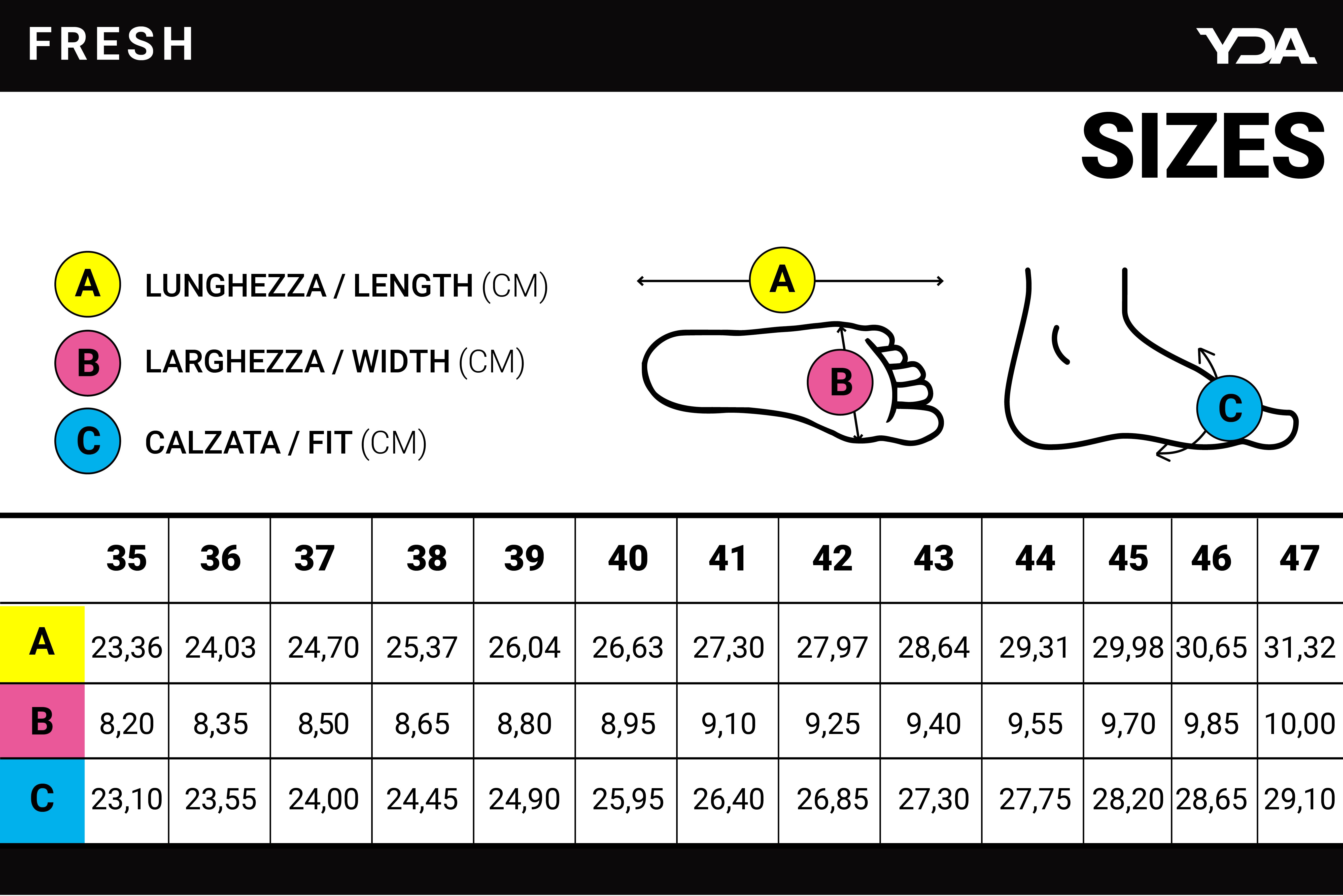 La sneaker Fresh si presenta con una tomaia automodellante semielastica ed inserti termosaldati 3D, soletta interna estraibile ed apertura con easy-lace. YDA consente di curare il bilanciamento della postura e potenziare le funzionalità del corpo. Il sistema antishock che ridistribuisce il peso sull’intera superficie plantare e lo Spring System favoriscono il rotolamento del piede restituendo una piacevole sensazione di benessere ed equilibrio.